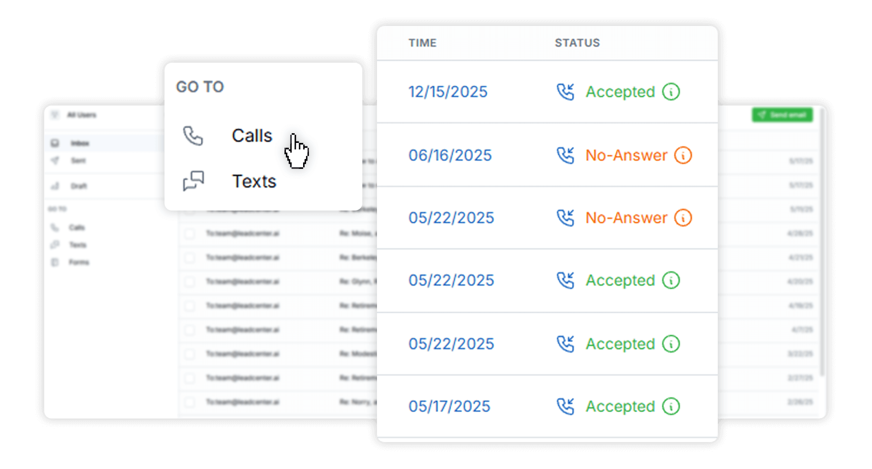 Make and track calls directly from LeadCenter and automatically capture call activity in your CRM — every conversation tied to the right contact for better follow-ups and pipeline growth.