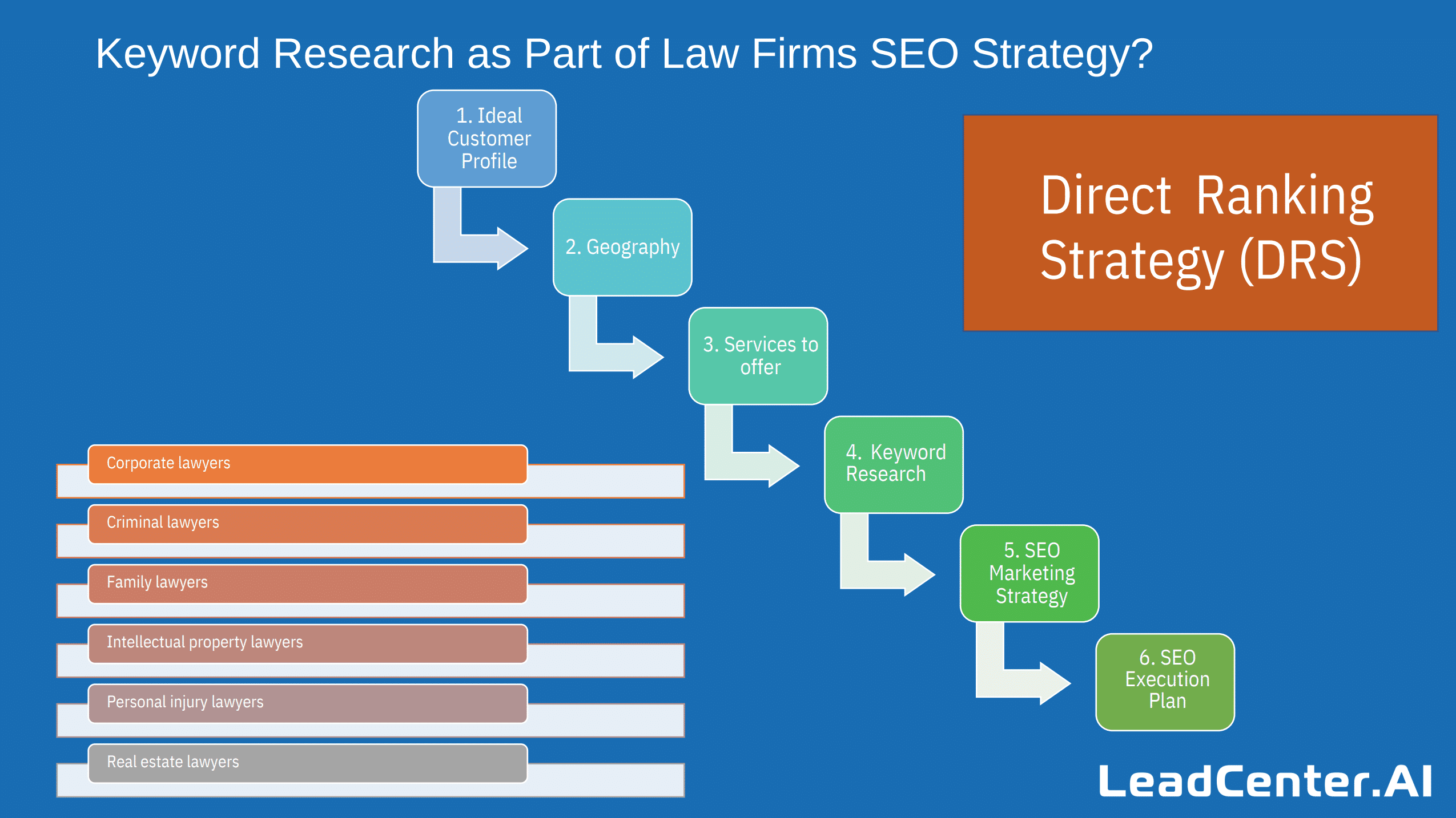 A direct ranking strategy means that you are trying to rank directly for the specific legal services that you offer. This involves optimizing your website and content for keywords that are directly related to your legal services and building high-quality backlinks to increase your website's authority and trustworthiness in the eyes of search engines.